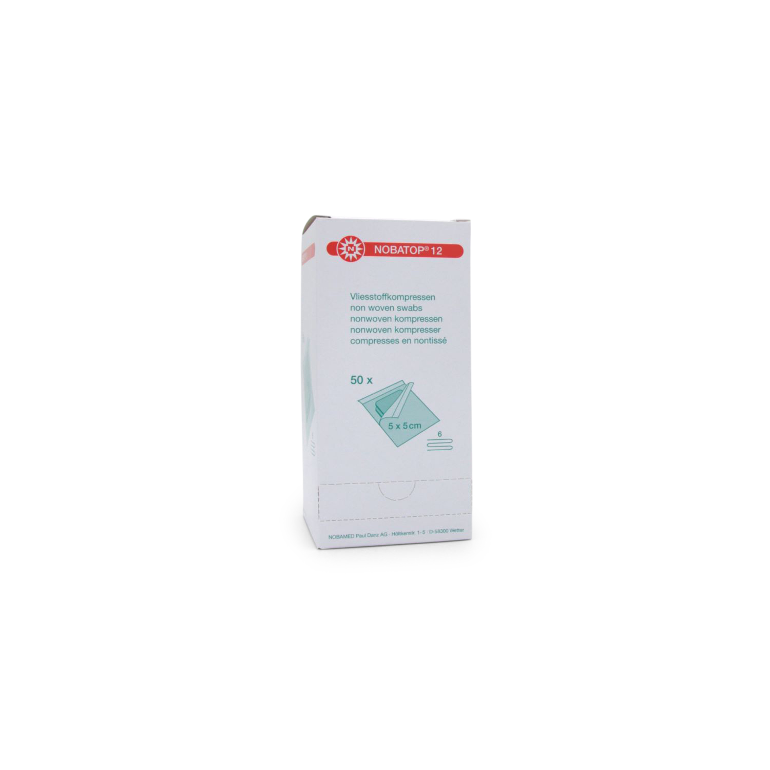 Produktinformationen "NOBATOP® 12 Vlieskompressen (5 cm x 5 cm, 6-fach, steril)"