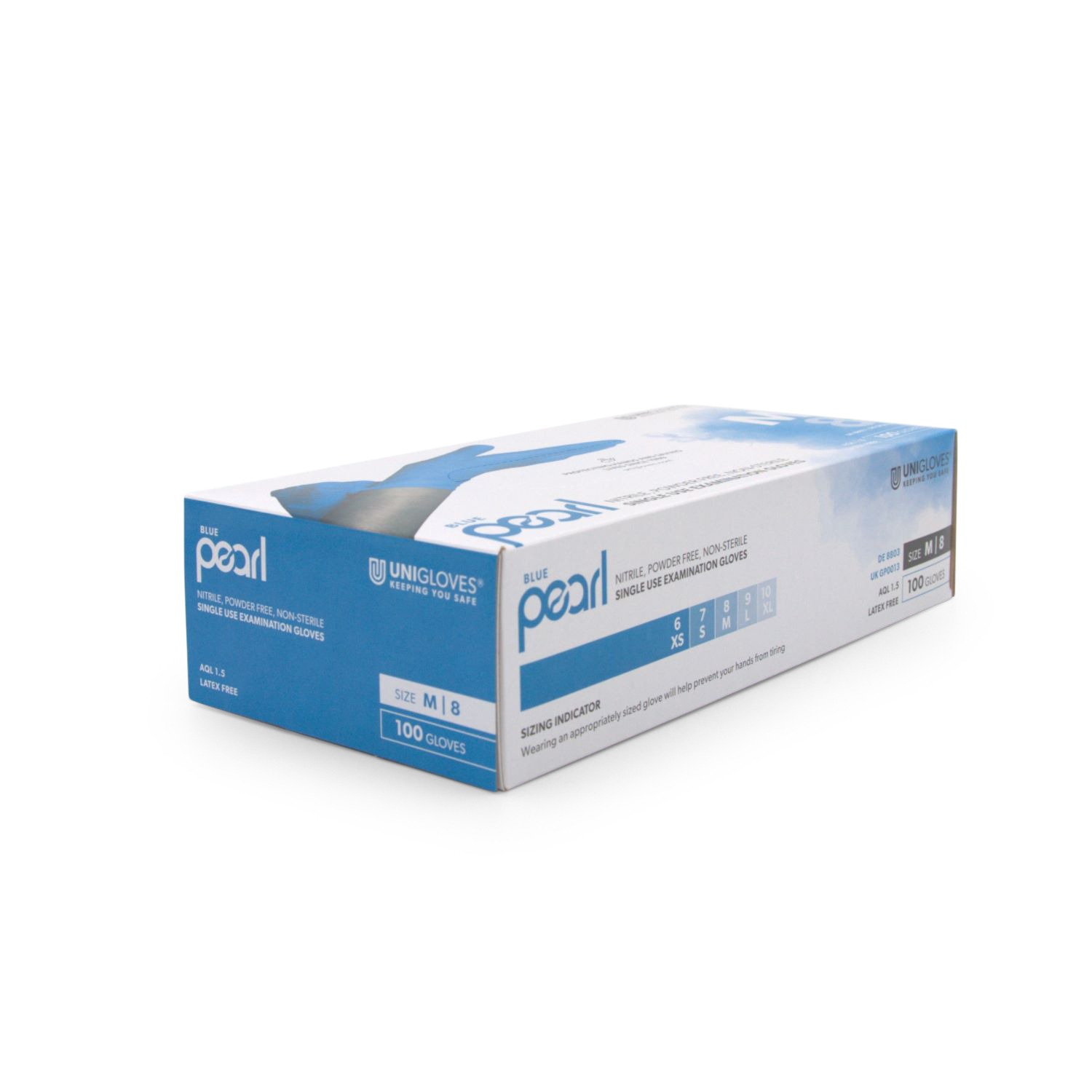 Produktinformationen "Unigloves BLUE PEARL® Handschuh (Gr. M, Nitril, PF, unsteril)"